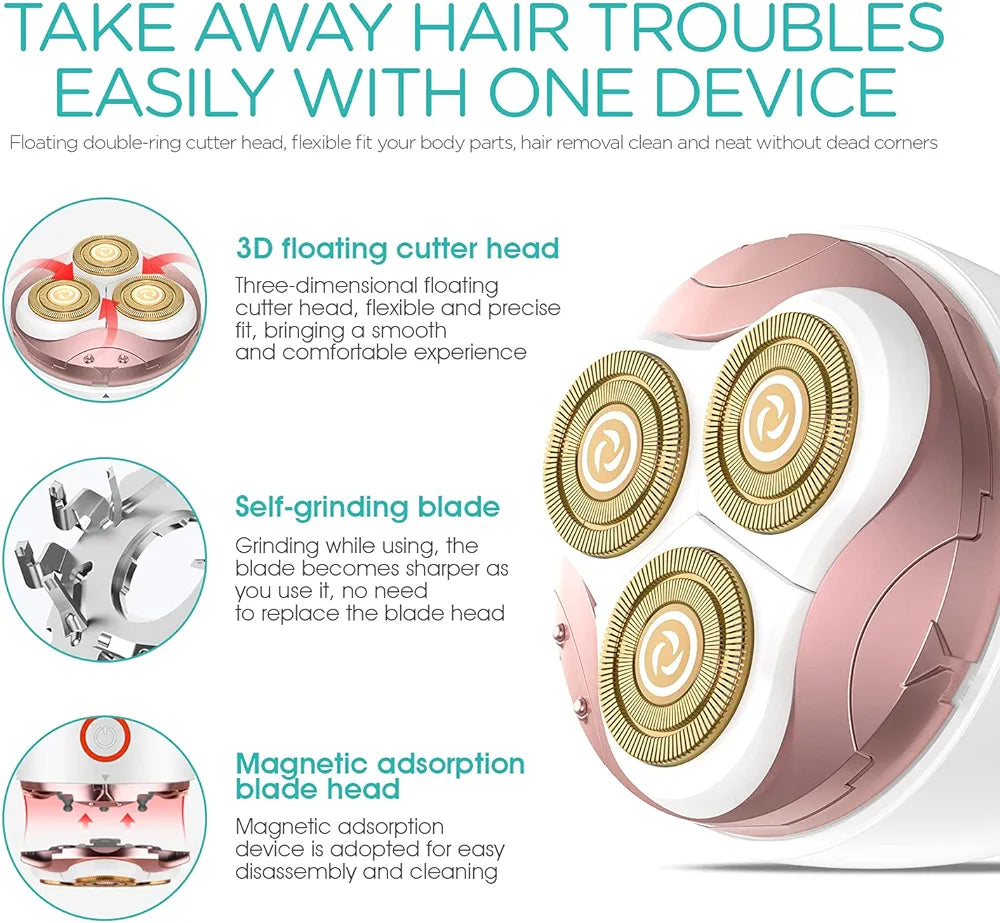 Electric Shaver for Women 3D floating blade Rotary Razor Hair Remover for Arms, Legs and Underarms Rechargeable Portable and Safe Wet and Dry Use ES300